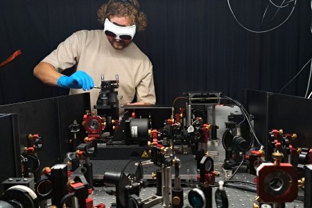 Antonios's research focuses on ptychography, an imaging technique. Instead of lenses, the technique uses laser diffraction patterns and computer reconstruction to make images of objects at microscopic scales. |